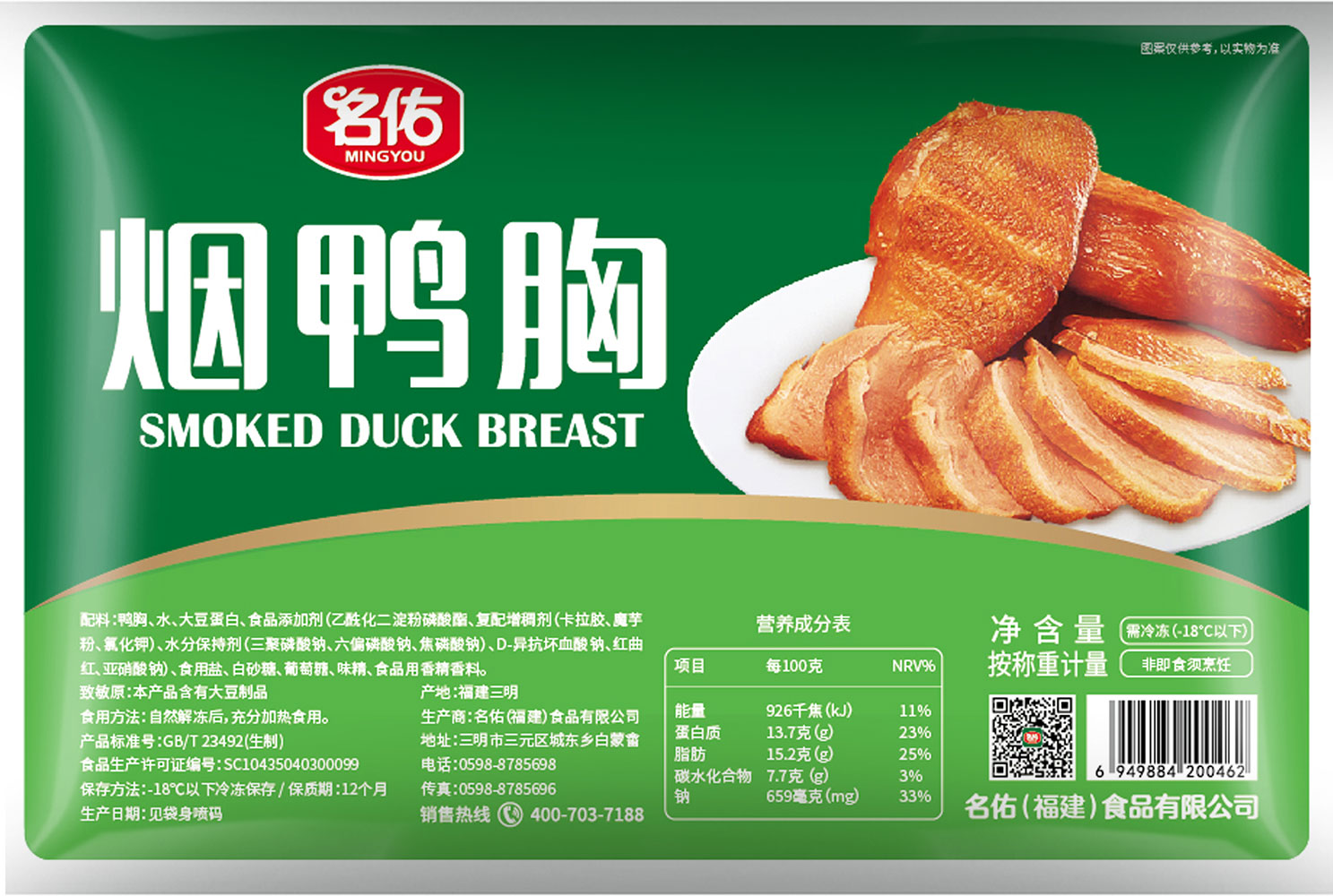產(chǎn)品名稱:名佑煙鴨胸(黑椒味)獨立裝 產(chǎn)品規(guī)格:5kg/件、10kg/件